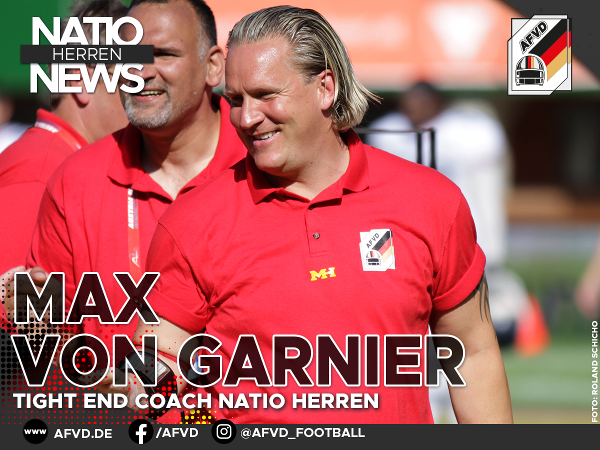 Der dienstälteste Coach der Nationalmannschaft Maximilian von Garnier gehört auch in der neuen Konstellation zur Trainer Crew und wird die Tight Ends trainieren.