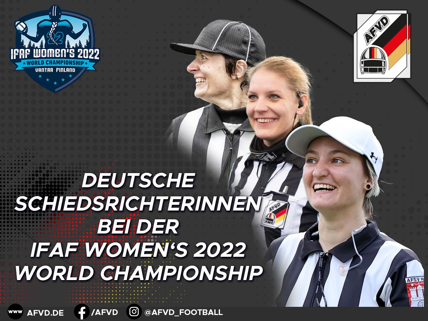 Sebastian Barth, Bundesschiedsrichter-Obmann im AFVD: „Wir schicken drei unserer besten Schiedsrichterinnen nach Finnland, die ihr Spielverständnis und ihren Sachverstand bereits in der GFL unter Beweis gestellt haben. Ich freue mich sehr mit allen dreien und weiß, dass sie ihre deutschen Kolleginnen und Kollegen auf internationalem Niveau ausgezeichnet vertreten werden.“