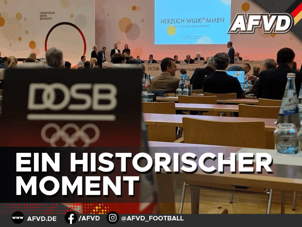 Um 13:13 Uhr war es soweit. Bei der 20. DOSB-Mitgliederversammlung am 2. Dezember 2023 in Frankfurt wurde unter dem Tagesordnungspunkt 16.7 „Beschluss über die Zuordnung von Verbänden“ u.a. der AFVD e.V. ab dem 01.01.2024 den olympischen Spitzenverbänden zugeordnet. Ein historischer Moment für den AFVD! Möglich wurde dies durch die Aufnahme von Flag Football für die […]