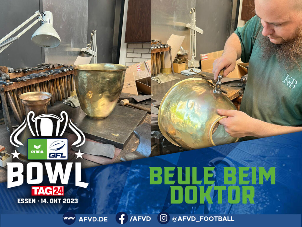 Rechtzeitig zum GFL-Bowl, dem Endspiel um die Deutsche Meisterschaft im American Football am 14. Oktober 2023 in Essen, wird der Siegerpokal komplett restauriert. Der Pokal hat seine liebevolle Bezeichnung „Beule“ nicht ohne Grund, hat der doch in den letzten Jahren sehr gelitten. Die Beulen und Dellen zeugen von offensichtlich zahlreichen überschwänglichen Feiern. Seit 1992 wird […]