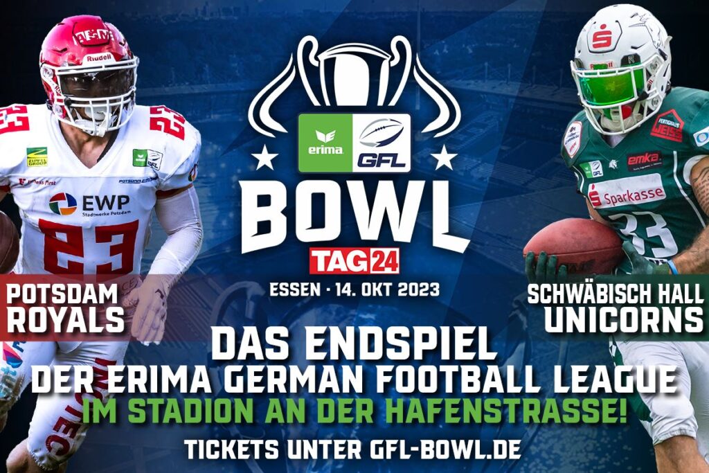 Es kommt am 14. Oktober 2023 im ERIMA GFL Bowl präsentiert von TAG24 zum Rematch des letztjährigen Finals. Vor einem Jahr wurden die Schwäbisch Hall Unicorns mit einem 44:27 Sieg gegen die Potsdam Royals deutscher Meister im American Football. Jetzt stehen sich beide Teams erneut im Endspiel um die deutsche Meisterschaft im American Football gegenüber. […]