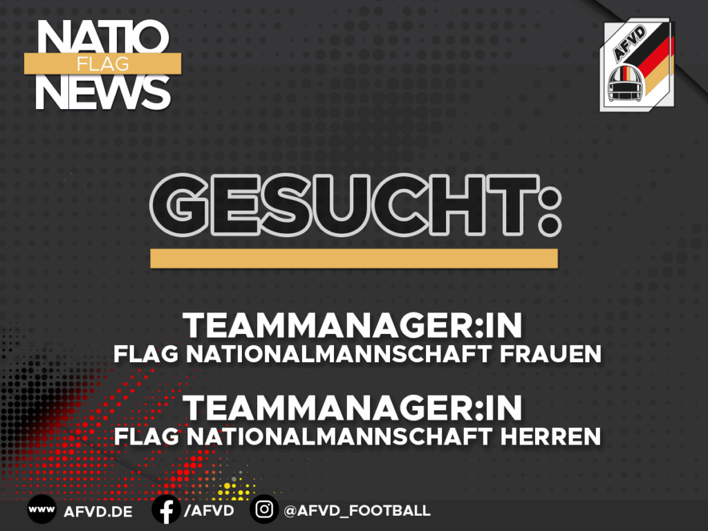 Der AFV Deutschland e. V. sucht zur sofortigen Besetzung zwei Team ManagerInnen für die Damen & Herren Flag Football-Nationalteams.