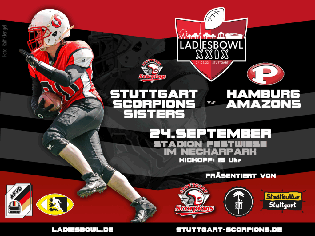Stuttgart Scorpions Sisters und Hamburg Amazons spielen um deutsche Meisterschaft Mit ihrem Sieg gegen die Damen der Munich Cowboys am letzten Sonntag haben die Stuttgart Scorpions Sisters nicht nur die Südmeisterschaft gewonnen, sondern ziehen damit gegen den Nordmeister, die Hamburg Amazons, ins Finalspiel um die 29. Deutsche Meisterschaft im American Football der Frauen, dem Ladiesbowl XXIX. Dabei […]