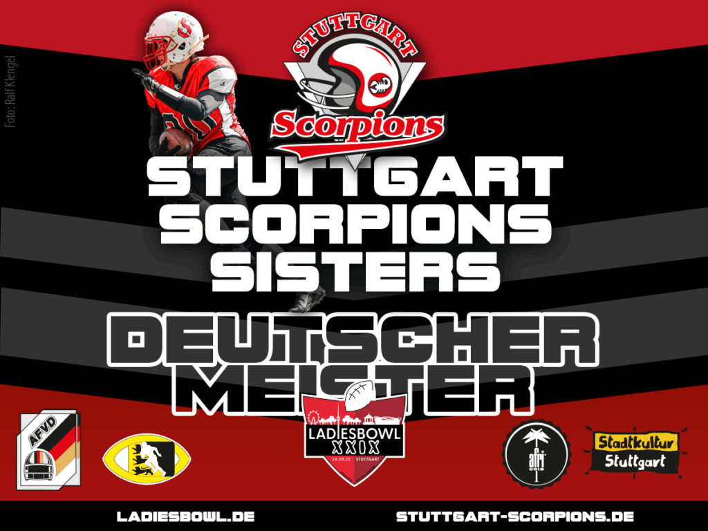 Im 29. Ladiesbowl besiegten die Stuttgarterinnen die Hamburg Amazons 35:20. Damit sorgten sie zum 40jährigen Jubiläum der Scorpions für den ersten deutschen Meistertitel des Vereins. Trotz Regenwetter sorgten die 650 Zuschauer auf der vollbesetzten Tribüne im Stadion an der Festwiese für beste Stimmung. Für diese sorgte auch der GFL-Stadionsprecher der Stuttgart Scorpions Marco Metzler, den […]