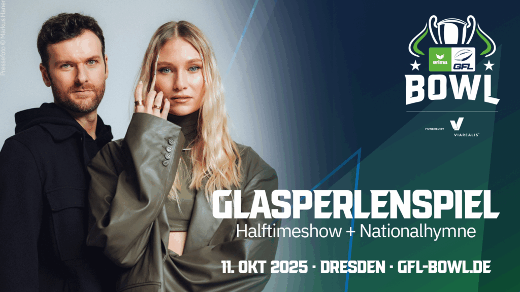 Der ERIMA GFL Bowl powered by VIAREALIS im Rudolf-Harbig-Stadion Dresden verspricht nicht nur ein packendes Finale der ERIMA German Football League, sondern auch ein musikalisches Feuerwerk: Das Elektropop-Duo Glasperlenspiel übernimmt die Halbzeitshow und zelebriert gemeinsam mit den Fans das zehnjährige Jubiläum ihres Kult-Hits „Geiles Leben“. Mit über 120 Cheerleadern verwandeln Caro und Daniel Grunenberg das […]