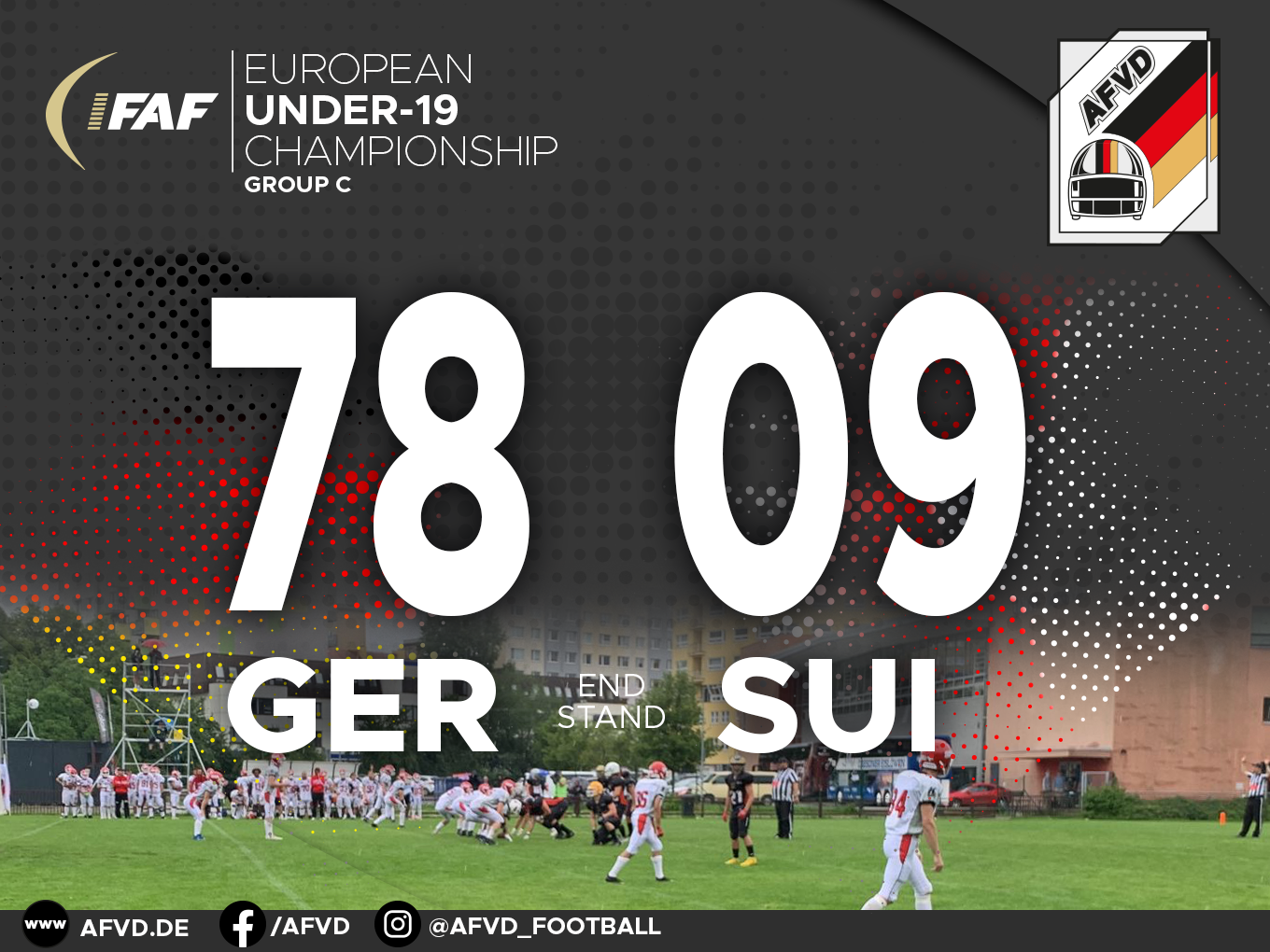 Die deutsche Junioren-Nationalmannschaft hat das EM-Turnier in Prag mit den deutlichen 78:9-Sieg gegen die Schweiz souverän für sich entschieden und steigt damit in die B-Gruppe auf.