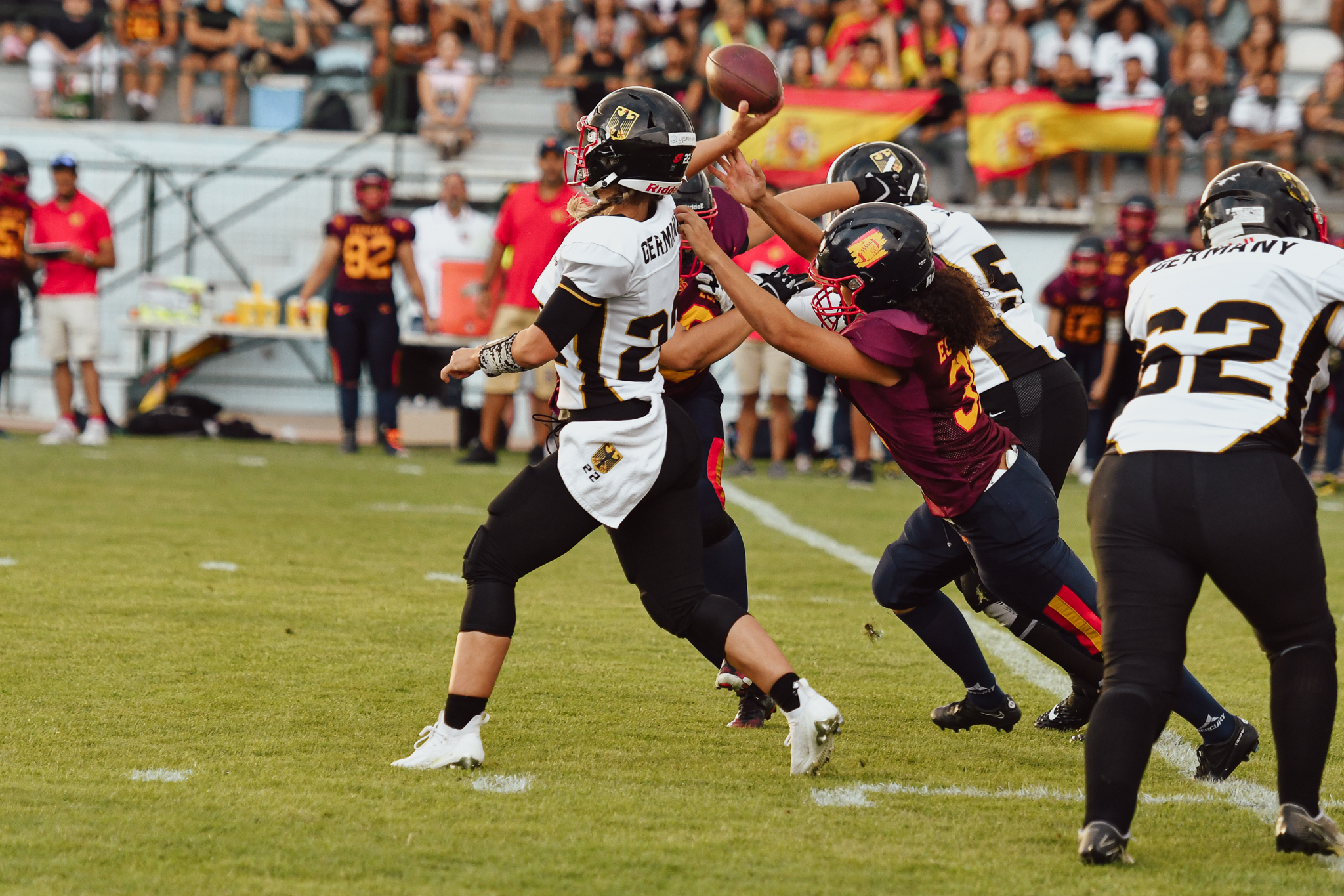 Nach dem schwierigen Auftakt dieser Europameisterschaft mit einer 7:21 Niederlage in Finnland brennen die deutschen Frauen darauf, es dieses Mal besser zu machen. Am Sonntag, den 31. August 2025 kommt es im Sportpark Pennenfeld in Bonn zum heiß erwarteten Länderspiel zwischen der deutschen Frauen-Tackle-Nationalmannschaft und Spanien. Der Kickoff ist am Sonntag bereits um 11:45Uhr.