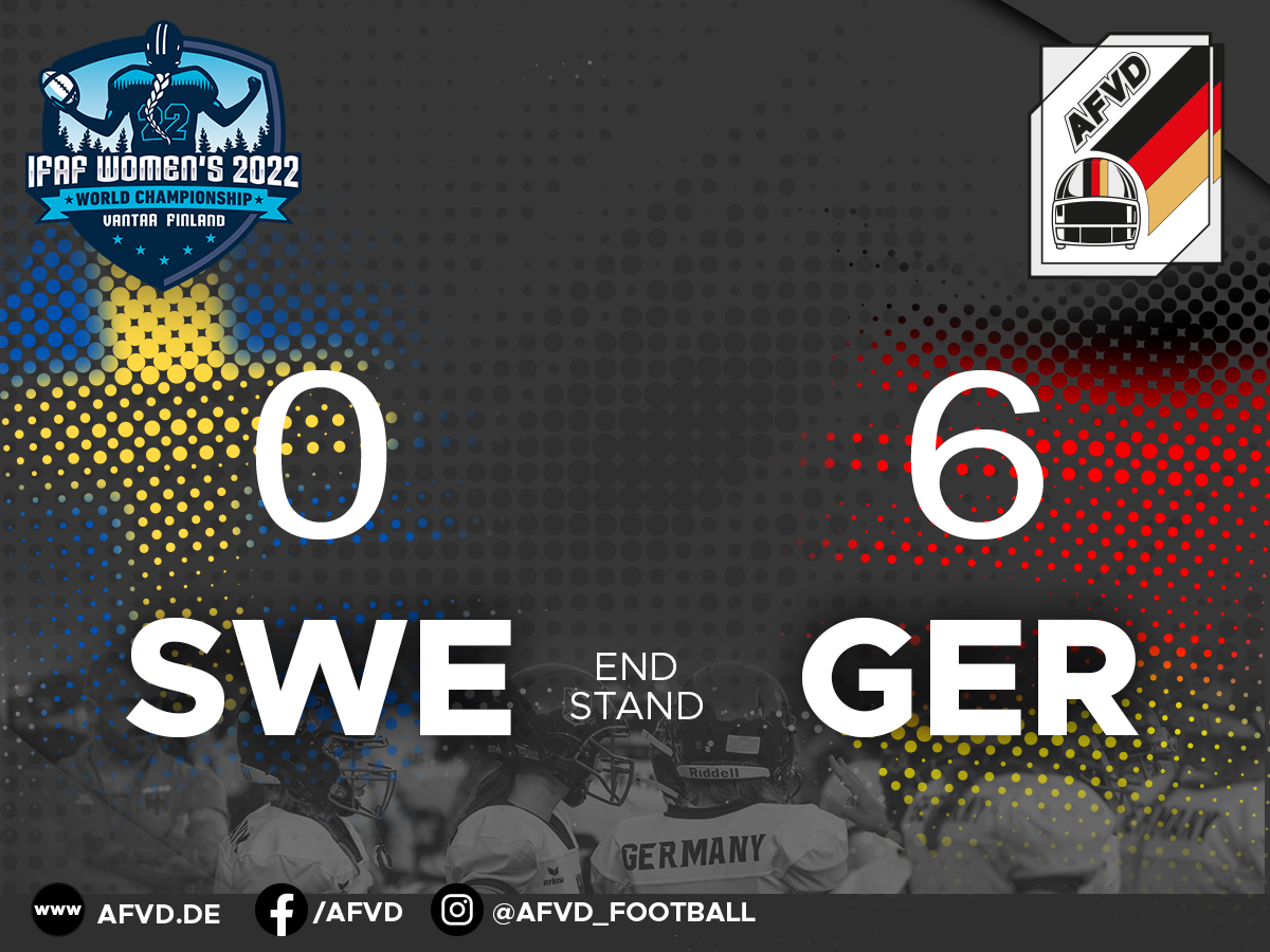 Das deutsche Nationalteam der Frauen darf feiern: In der Partie um den Einzug in das Spiel um Platz fünf setzte das AFVD-Team sich mit 6:0 (0:0, 0:0, 6:0, 0:0) in einem harten Kampf gegen Schweden durch. Trotz einiger notwendiger Umstellungen im Kader kam man im vierten Vergleich bei einem internationalen Turnier auch zum vierten Sieg gegen die Skandinavierinnen. Den Touchdown für Deutschland erzielte Ellen Ries, maßgeblich war eine Glanzvorstellung der deutschen Verteidigung, die sich starkem schwedischen Druck gegenüber sah und dennoch fünf gegnerische Ballverluste erzwingen konnte. Carina Liebenthal fing zwei der Interceptions.