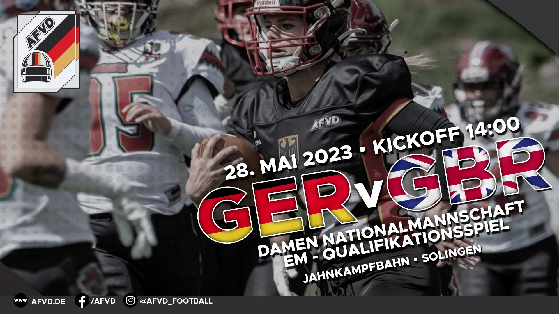 Am Sonntag, den 28.05.2023 erwartet die deutsche Frauen Nationalmannschaft in Solingen die Vizeweltmeister aus Großbritannien zum Auftakt der Europameisterschafts-Länderspielserie. Kickoff ist um 14:00 Uhr, Einlass ab 13:00 Uhr. Die Solingen Paladins sorgen für das Catering, Cheerleader und live gesungene Nationalhymnen für das passende Rahmenprogramm. Kinder bis 6 Jahre haben freien Eintritt, Tickets für Schüler und Studenten sind für 7,- Euro und für Erwachsene für 12,- Euro erhältlich.
