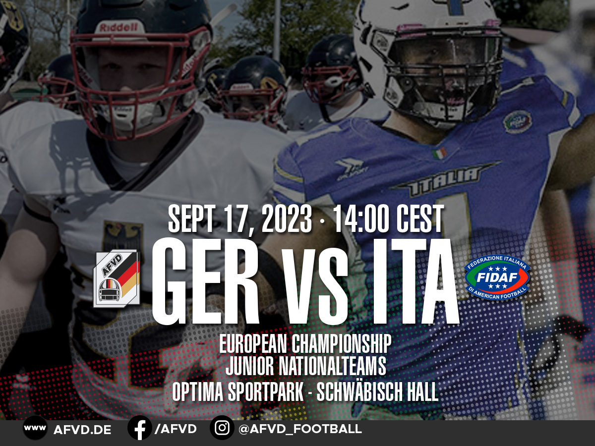 Am Sonntag, den 17. September (Kickoff 14:00 Uhr) empfängt die deutsche U19 Nationalmannschaft das Team aus Italien in Schwäbisch Hall im OPTIMA Sportpark. Mit großer Spannung wird jetzt von allen Beteiligten dem Spiel entgegengefiebert – geht es doch um nichts Geringeres als den direkten Aufstieg in die A-Gruppe.