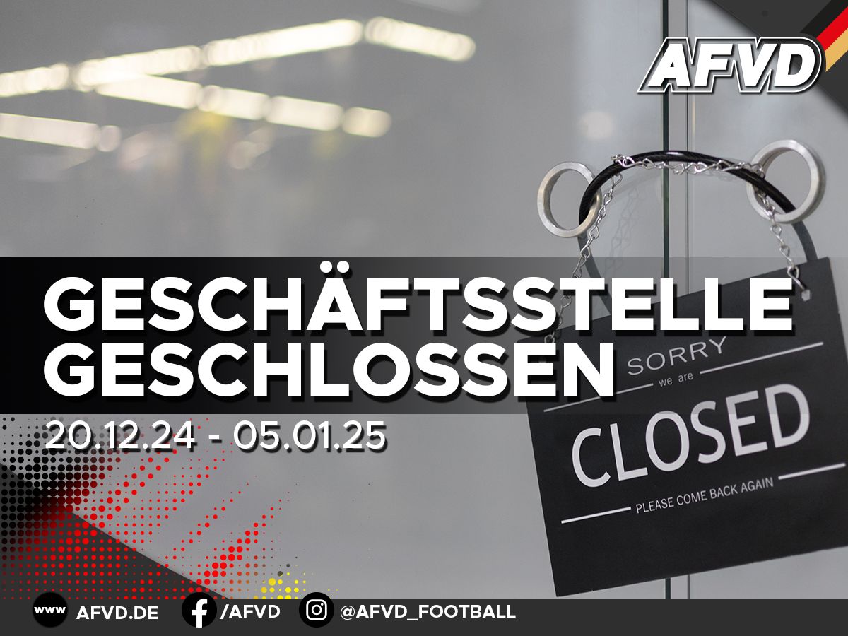Das Präsidium und die Geschäftsstelle des AFVD befinden sich vom 20.12.2024 bis 05.01.2025 im Urlaub. Bitte reichen Sie alle offenen Themen und Anfragen bis spätestens 19.12.2024 ein, da in dieser Zeit keine Bearbeitung möglich ist.