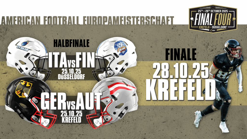 DONNERSTAG, 6. MÄRZ 2025 – KREFELD, DEUTSCHLAND – Im Oktober 2025 treffen sich die besten Herren-Nationalmannschaften im Tackle-Football, um den Sieger der IFAF Men’s European Championship 2024/25 zu küren. Der AFVD freut sich, das Final Four Turnier vom 25. bis 28. Oktober in Deutschland ausrichten zu dürfen. Neben dem Titelverteidiger Österreich treten auch Finnland, Italien […]